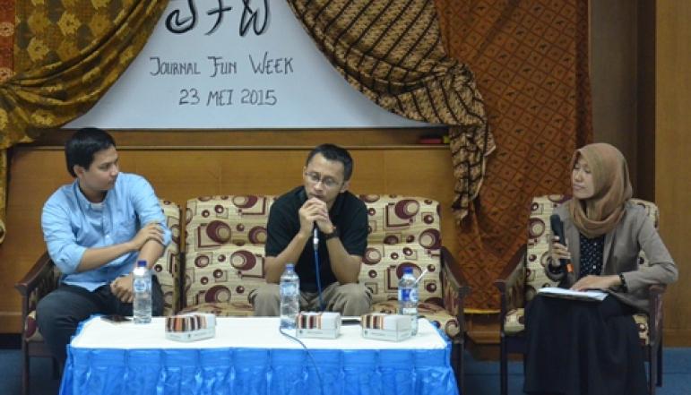 Himpunan Mahasiswa Fisika (HIMAFI) UNY, Sabtu, 23/5 menyelenggarakan Talkshow Journal Fun Week (JFW). Acara yang diselenggarakan di Ruang Sidang II FMIPA UNY ini merupakan puncak dari serangkaian acara lomba yang telah terlaksana pada tanggal 30 April sampai 9 Mei. Talkshow yang mengundang pembicara Azhar Nurun Ala (penulis novel Tuhan Maha Romantis) dan Adhitya Mulya (penulis novel Jomblo dan Sabtu Bersama Bapak) ini dihadiri sekitar 90 peserta yang berasal dari berbagai daerah. Talkshow yang bertemakan “Indonesia Bercerita Melalui Goresan Pena Anak Bangsa” dimoderatori oleh Pebri Nurhayati, Mapres UNY 2014.