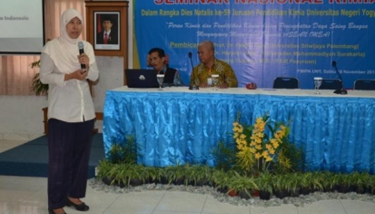 Demikian dipaparkan Simping Yuliatun dari Pusat Penelitian Perkebunan Gula Indonesia pada acara Seminar Nasional Kimia yang diselenggarakan oleh Jurusan Pendidikan Kimia FMIPA UNY, Sabtu, 14/11/15 di Ruang Sidang Fakultas. Seminar diikuti oleh para peneliti kimia, guru, pemerhati pendidikan serta mahasiswa. Pembicara lain pada seminar tersebut yaitu Prof. Dr. Fakhili Gulo dari Universitas Sriwijaya dan Dr. Haryoto, M.Sc., dari Universitas Muhammadiyah Surakarta.