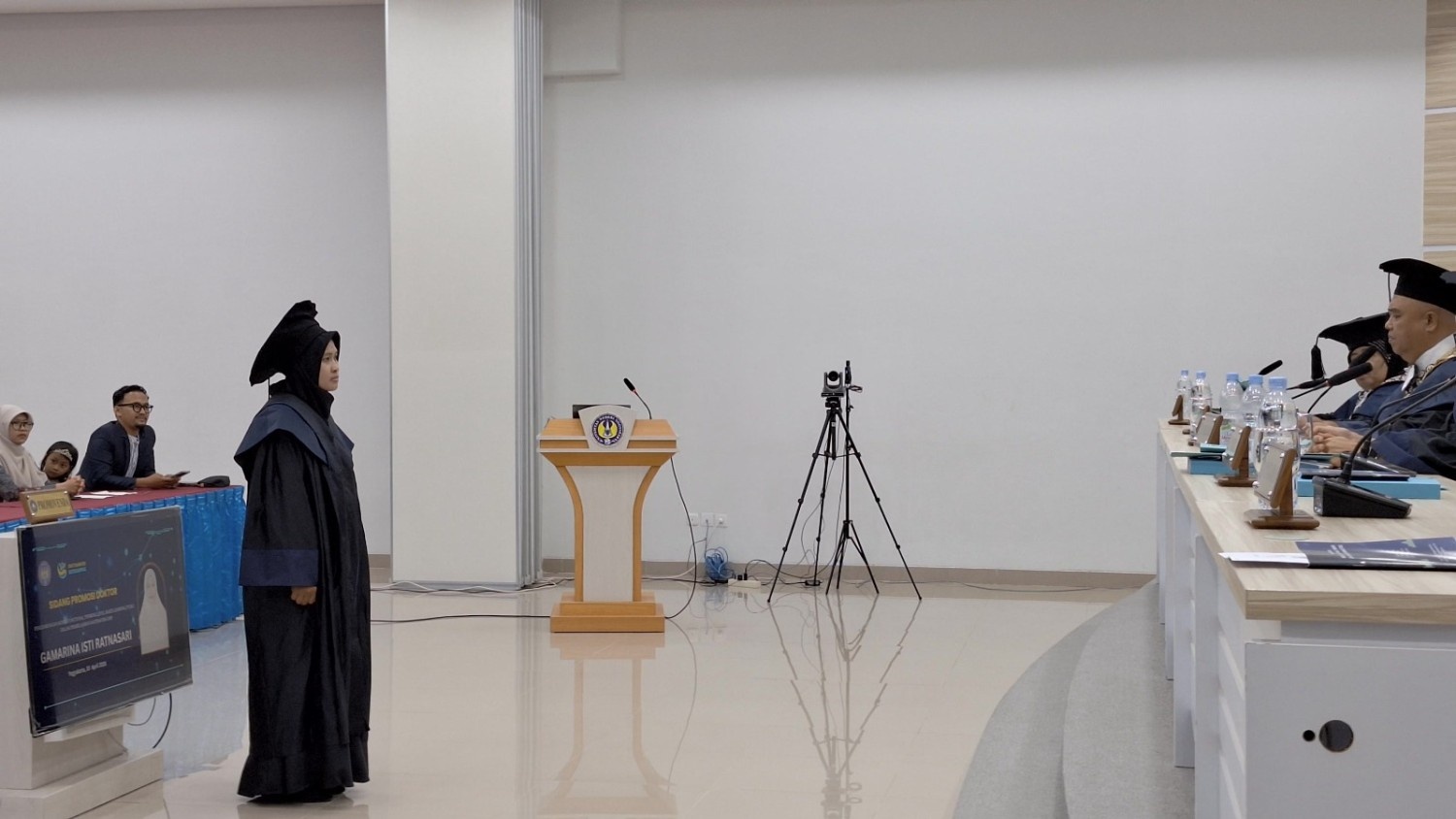 Gamarina Isti Ratnasari, mahasiswa Program Studi Pendidikan Matematika FMIPA Universitas Negeri Yogyakarta, berhasil mempertahankan disertasinya dalam Sidang Terbuka Promosi Doktor yang berlangsung secara khidmat. Sidang diawali dengan prosesi masuk promovenda dan dewan penguji, dilanjutkan dengan menyanyikan lagu kebangsaan Indonesia Raya, serta pembacaan biodata promovenda oleh promotor, Dr. Jamilah Bondanwijayawati, M.Si.