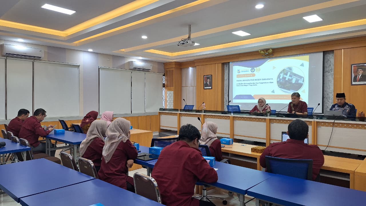 FMIPA Universitas Negeri Yogyakarta (UNY) menerima kunjungan benchmarking dari FMIPA Universitas Negeri Surabaya (UNESA) dalam rangka memperkuat pengelolaan dan penjaminan mutu program pascasarjana. Kegiatan ini berlangsung di Ruang Sidang Utama FMIPA UNY pada hari Rabu (13/08/2025) dan dihadiri jajaran pimpinan, ketua program studi, serta tim penjaminan mutu dari kedua fakultas.