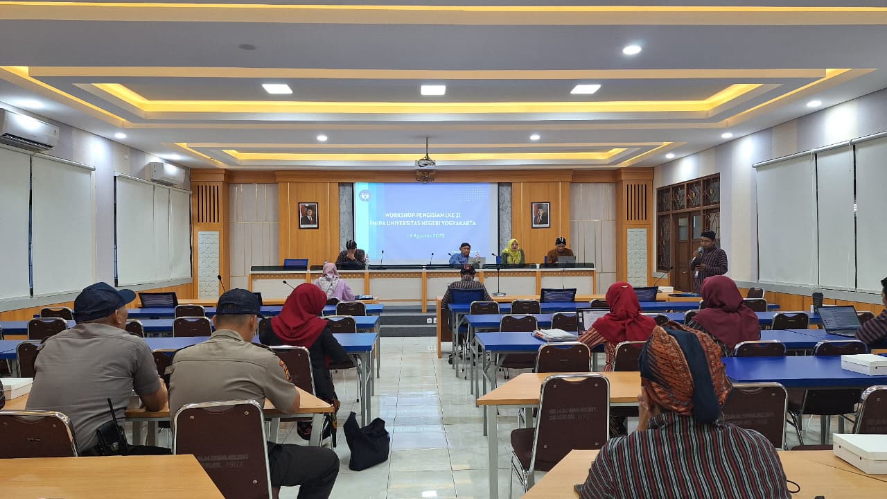 Dalam rangka mewujudkan zona integritas menuju Wilayah Bebas dari Korupsi (WBK) dan Wilayah Birokrasi Bersih dan Melayani (WBBM), Fakultas Matematika dan Ilmu Pengetahuan Alam Universitas Negeri Yogyakarta (FMIPA UNY) menggelar Workshop Pengisian Lembar Kerja Evaluasi Zona Integritas (LKE ZI), Kamis (15/08/2025) di Ruang Sidang 3 FMIPA UNY.