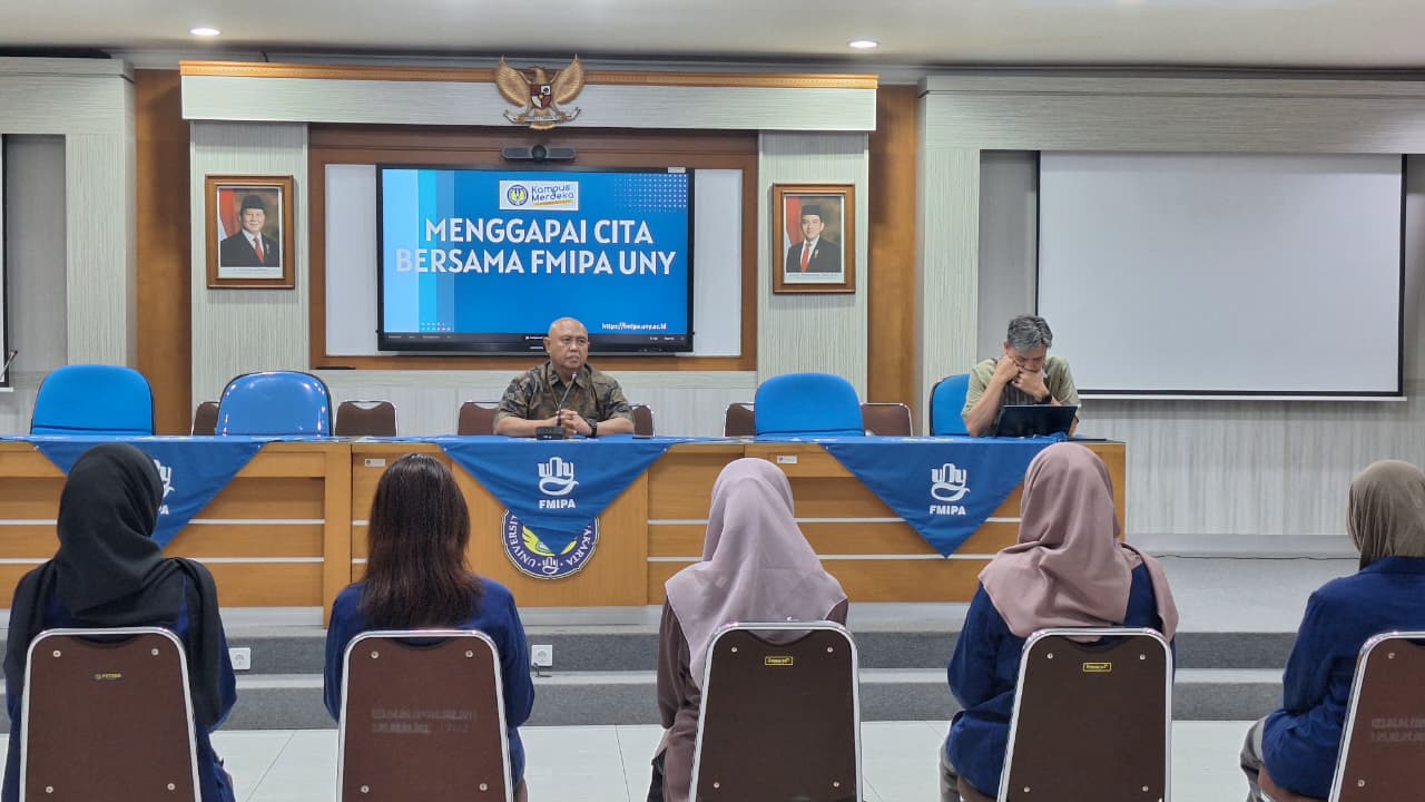 Fakultas Matematika dan Ilmu Pengetahuan Alam Universitas Negeri Yogyakarta (FMIPA UNY) memberikan penghargaan kepada mahasiswa berprestasi periode Juli–September 2025. Kegiatan ini menjadi bentuk apresiasi fakultas terhadap capaian luar biasa mahasiswa yang telah mengharumkan nama FMIPA UNY di berbagai ajang, dilaksanakan hari Jumat (10/10/2025) di Ruang Sidang 2 FMIPA UNY.
