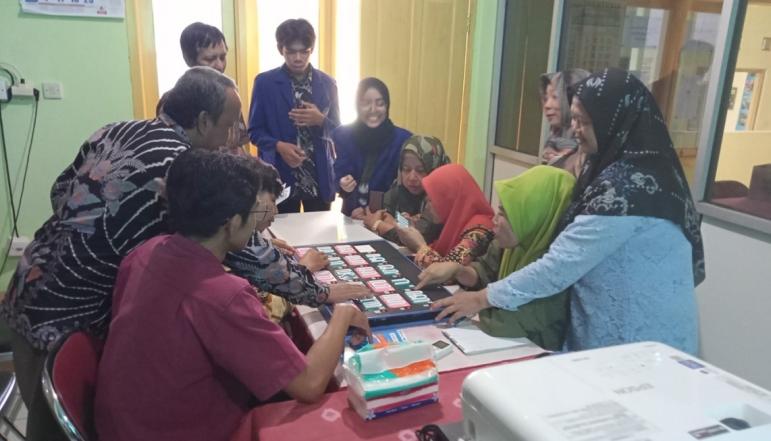 Cindy Pratama mengungkapkan bahwa tahap pelaksanaan program mencakup pendistribusian media ajar dan buku pedoman, sosialisasi program, demonstrasi media, pelatihan, pendampingan, serta monitoring yang melibatkan partisipasi aktif dari mitra. Pelatihan dan pendampingan ini menggunakan metode pendekatan somatic-auditory-intellectual yang diadaptasi dari metode SAVI. Melalui pendekatan ini, siswa meraba bentuk aksara Jawa timbul, mencocokan braille yang berada di samping kanan atas balok, mendengarkan audio, memasangkan puzzle, memadukan serta membaca kata-kata berdasarkan aksara Jawa.