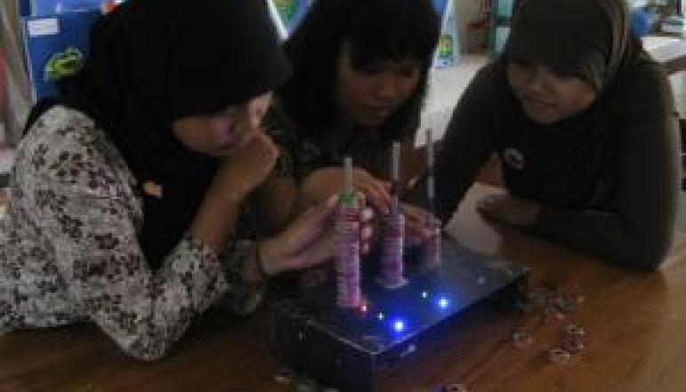Matematika merupakan salah satu ilmu yang wajib dipelajari karena matematika dapat digunakan untuk mengembangkan ilmu pengetahuan dan teknologi yang lain. Sedemikian pentingnya matematika namun ironisnya matematika merupakan mata pelajaran yang kurang disukai di kalangan pelajar. Hal ini mengakibatkan minat dan penguasaan matematika di kalangan pelajar sangat rendah. Salah satu inovasi dan caranya adalah penggunaan alat peraga. Banyak bab dalam mata pelajaran matematika yang membutuhkan alat bantu peraga untuk memvisualisasikannya kepada siswa khususnya siswa Sekolah Dasar agar siswa tak lagi berkhayal tetapi benda yang dibicarakan oleh pengajar menjadi benar-benar nyata baginya. Dengan melihat, meraba, dan memanipulasi objeknya siswa dapat mengembangkan dan mencari pengalaman dan inovasi lain dalam kehidupan sehari-harinya yang berkaitan dengan penanaman konsep materi ajar. Dari sini sekelompok mahasiswa jurusan pendidikan matematika Fakultas MIPA Universitas Negeri Yogyakarta yaitu Eka Sulistyawati, Absari Nur Khasanah dan Margaretha Madha Melissa membuat alat peraga sederhana untuk mengajarkan materi matematika yaitu Kelipatan Persekutuan Terkecil (KPK) dan Faktor Persekutuan Terbesar (FPB) menggunakan tutup botol bekas. Menurut Eka Sulistyawati, dunia anak identik dengan dunia bermain yang menarik sehingga hendaknya dimanfaatkan pula sebagai cara efektif dalam penyampaian materi termasuk materi bilangan yang telah diperkenalkan sejak sekolah dasar, seperti KPK dan FPB. Kreatifitas ini berhasil memperoleh dana dari DIKTI sebagai Program Kreatifitas Mahasiswa Teknologi 2011.