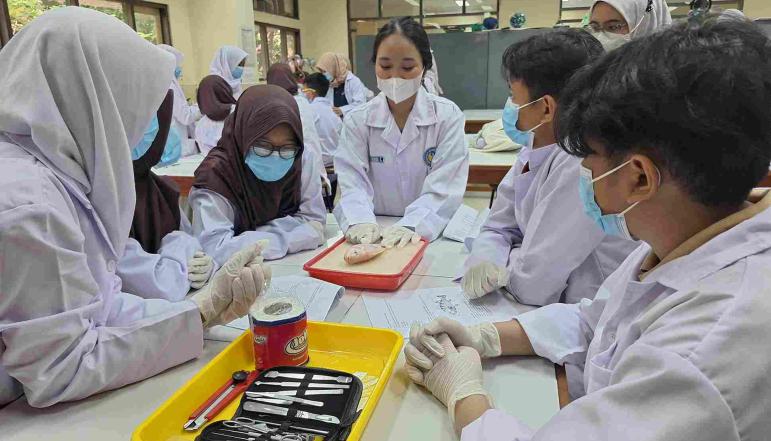 Kegiatan kunjungan ini dalam rangka praktikum Struktur (Morfologi dan Anatomi) Tumbuhan & Hewan, yang meliputi: 1) Preparasi Jar Epitel; 2) Preparasi Jar Darah; 3) Preparasi Jar Tulang Paha Ayam; 4) Morfologi Luar & Dalam (Diseksi) Ikan; 5) Morfologi Luar & Dalam (Diseksi) Mencit; 6) Morfologi & Anatomi Organ Akar, Batang, Daun & Bunga Padi, Kacang Tanah; 8) Morfologi & Anatomi Organ Akar, Batang, Daun & Bunga Enceng gondok, Lidah Buaya; dan 9) Morfologi & Anatomi Organ Akar, Batang, Daun & Bunga Anggrek Keladi & Empon-empon. Kegiatan praktikum ini dilakukan oleh para siswa SMP & SMA Al-Azhar Yogyakarta.