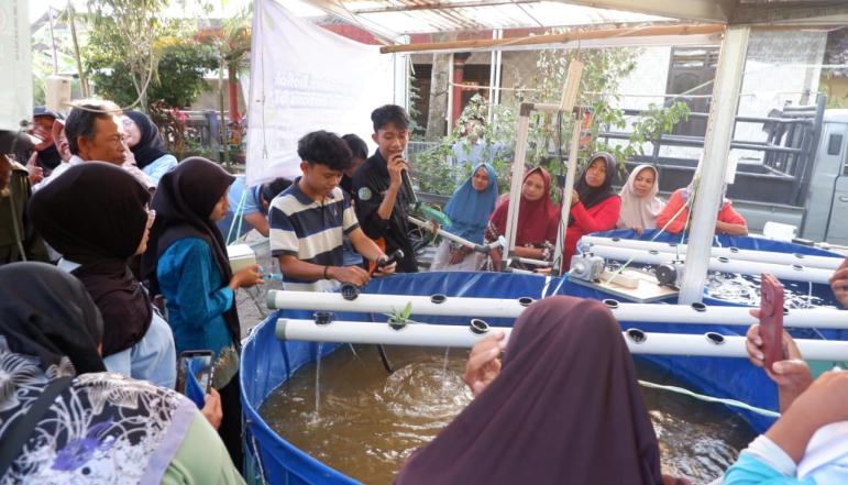 Para peserta mempraktikkan Penyemaian Hidroponik yaitu peserta mempraktikkan cara menanam sayuran dengan sistem hidroponik, yang lebih ramah lingkungan dan hemat lahan, Fermentasi Bioflok yaitu warga dilatih memanfaatkan mikroorganisme untuk menjaga kualitas air kolam, sehingga lele tumbuh sehat tanpa membutuhkan banyak penggantian air. Selain juga praktik Pengelolaan IoT Feed and Care, disini mahasiswa mendampingi warga dalam penggunaan perangkat IoT untuk pakan otomatis dan monitoring kolam, sehingga teknologi benar-benar dapat dirasakan manfaatnya oleh masyarakat.