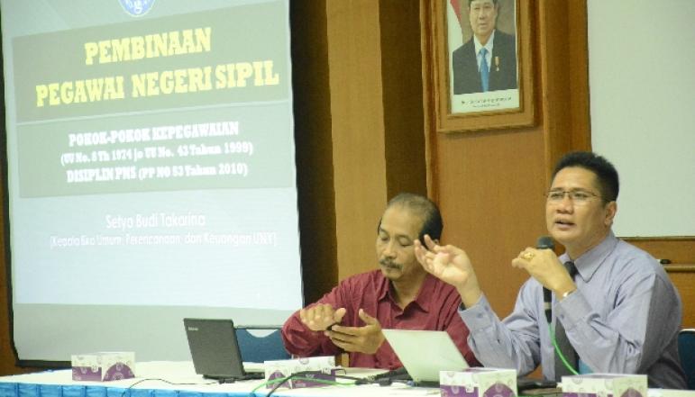 Akhir-akhir ini UNY sering mendapat gugatan lewat ombudsman karena masalah pelayanan. Sebenarnya di UNY sudah punya Unit Pelayanan Teknis Layanan Konsultasi dan Bantuan Hukum (UPT LKBH) untuk mengadu tentang pelayan yang diberikan oleh dosen dan karyawan, tapi belum semua pegawai mengetahuinya. Sosialisasi ini bertujuan untuk meminimalkan aduan-aduan.