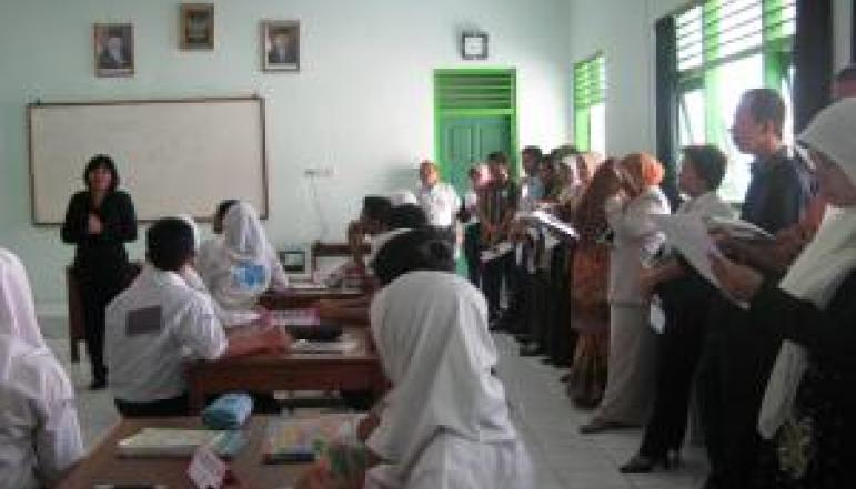 Dua puluh dua orang peserta Technical Exchange Experience dari Padang dan Manado mengunjungi SMPN 1 Sewon dalam rangka observasi open lesson di kelas. Kegiatan yang berlangsung pada Rabu, 3 November 2010 ini didampingi oleh dosen dari FMIPA UNY Dr. Yosaphat Sumardi dan Anna Rakhmawati, M.Si, Subkhi, M.PdI dari Kemenag Provinsi DIY, Drs. Sumarjo dari Dinas Pendidikan Kabupaten Bantul serta expert JICA Yoko Takimoto. Mata pelajaran yang di-open lesson-kan adalah bahasa Inggris bersama guru model C. Lely Damayanti, M.Pd dengan materi “Teks Fungsional Pendek Berbentuk Undangan”” di kelas 8.