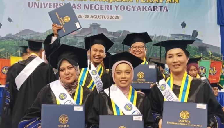 Fakultas Matematika dan Ilmu Pengetahuan Alam Universitas Negeri Yogyakarta (FMIPA UNY) mencatat sejarah baru dalam dunia pendidikan tinggi dengan meluluskan doktor pertama sepanjang sejarah fakultas. Tidak tanggung-tanggung, sebanyak lima mahasiswa program doktor resmi dikukuhkan kelulusannya pada periode wisuda Agustus 2025, yaitu Dr. Desfi Annisa (S3 Pendidikan Kimia), Dr. Sumbaji Putranto (S3 Pendidikan Matematika), Dr. Wenny Pinta Litna Br. Tarigan (S3 Pendidikan IPA), Dr. Ratna Dyah Hartanti (S3 Pendidikan IPA), Dr. Agung Nugroho Catur Saputro (S3 Pendidikan Kimia). Ketiga di antaranya mendapat predikat lulusan terbaik program studi, yaitu Dr. Desfi Annisa (IPK 3,95), Dr. Sumbaji Putranto (IPK 4,00), Dr. Wenny Pinta Litna Br. Tarigan (IPK 4,00).