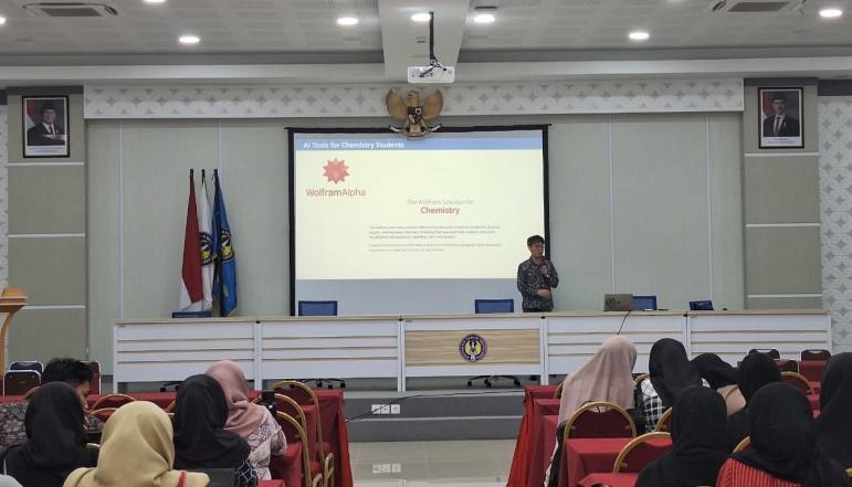 Dalam paparannya, Prof. Oh Jin Park, Ph.D. menjelaskan bahwa AI merupakan sistem yang meniru kecerdasan manusia, seperti kemampuan belajar dan memecahkan masalah, yang kini semakin banyak diintegrasikan dalam pembelajaran sains. Ia mengajak peserta untuk merefleksikan beberapa pertanyaan penting: Bagaimana AI dapat mengembangkan pembelajaran mandiri pada kimia atau bioteknologi? Keterampilan apa saja yang dibutuhkan untuk menggunakan AI secara efektif? Bagaimana memastikan etika penggunaan AI dalam pendidikan sains?