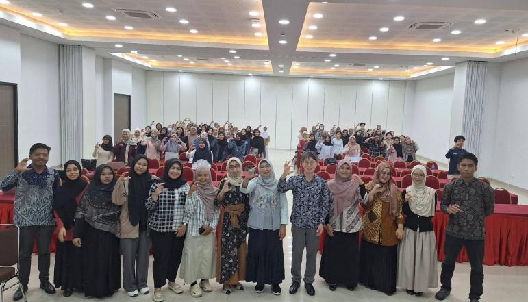 Narasumber, Prof. Oh Jin Park, Ph.D. juga menekankan pentingnya tanggung jawab dan etika dalam penggunaan AI, seperti memahami cara kerja model AI, memverifikasi hasil AI dengan pemikiran ilmiah, mengenali keterbatasan algoritma dan data, serta menjunjung keadilan dan transparansi. “AI bukan untuk menggantikan peran manusia, tetapi untuk memperluas kemampuan berpikir ilmiah dan kolaborasi lintas disiplin,” ujarnya.
